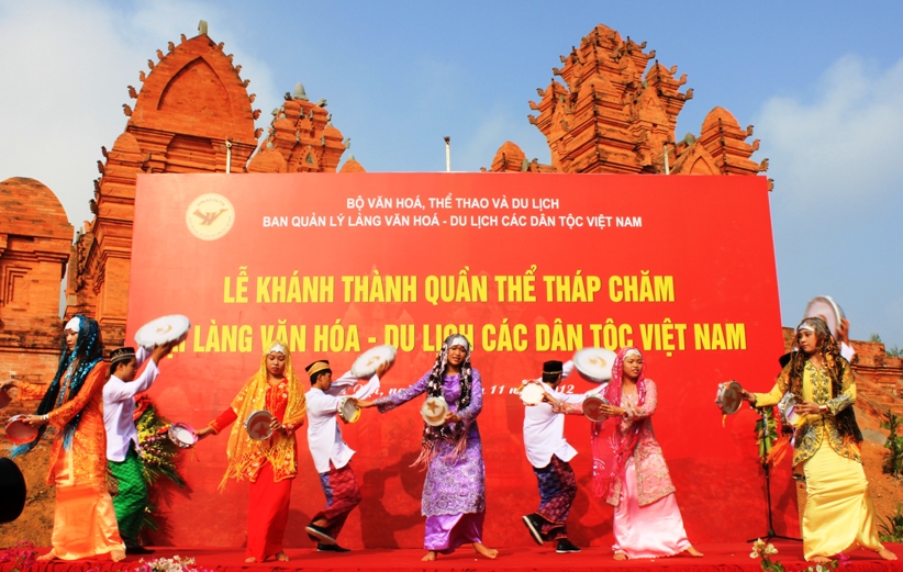 Kompleks menara Champa di Perkampungan Budaya dan Wisata Etnis-etnis Vietnam tidak hanya menciptakan aksentuasi kepada “Rumah bersama dalam keluarga besar semua etnis Vietnam” saja, melainkan juga merupakan satu tempat wisata, tempat merekonstruksikan pesta-pesta khas dari rakyat etnis Champa seperti: Acara buka pintu menara, pesta adat Kate, tempat penyelenggaraan berbagai temu pertukaran, pertunjukan kebudayaan dan kesenian, pameran untuk memperkenalkan instrumen musik, alat produksi, busana beserta ciri-ciri kehidupan kultural, adat istiadat yang khas dari rakyat etnis Champa pada hari warisan budaya Vietnam.