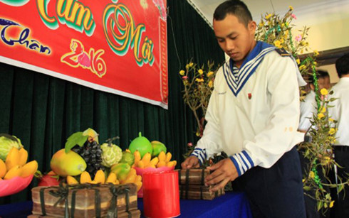Setelah upacara bendera, para komandan, prajurit dan rakyat di pulau bersama-sama datang ke pagoda untuk membakar hio dan memohon agar semua orang aman dan berbahagia sehubungan dengan Tahun Baru, membakar hio di Rumah Peringatan Presiden Ho Chi Minh dan Tugu Monumen Para Martir.