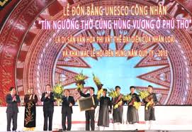 Upacara menyambut piagam pengakuan dari UNESCO terhadap Kepercayaan Memuja Raja Hung sebagai warisan budaya nonendawi dari umat manusia