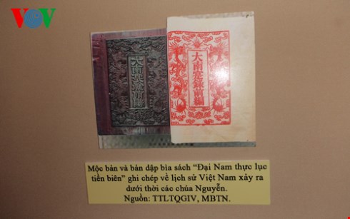 Pameran dengan tema “Dinasti Nguyen dengan pembuatan buku sejarah melalui Chau Ban dan Moc Ban-Pusaka dokumen dunia” memperkenalkan lebih dari 100 versi dokumen yang dipilih dari Chau Ban dan Moc Ban dari dinasti Nguyen yang sedang disimpan di Pusat Kearsifan Nasional 1 (kota Hanoi) dan Pusat Kearsifan Nasional 4 (kota Da Lat, provinsi Lam Dong). Ini merupakan dokumen-dokumen khas yang mencerminkan secara jelas dan akurat perhatian dan kebijakan para raja dinasti Nguyen terhadap pembuatan buku sejarah. Bapak Ha Van Hue, Direktur Pusat Kearsifan Nasional 1 memberitahukan bahwa ciri yang menonjol dan tipikal dari pusaka Chau Ban dan Moc Ban ialah mengandung informasi-informasi asli yang variatif tentang sejarah, geografi, sosial-politik, kelembagaan, kebudayaan, pendidikan, persajakan, bahasa dan lain-lain yang mencerminkan secara jelas kehidupan masyarakat dan manusia Vietnam dari tahun 1802 sampai tahun 1945. Bapak Ha Van Hue menilai: “Pembuatan buku sejarah dinasti Nguyen sangat profesional, berskala, sistimatik, teliti dan hati-hati meninggalkan hasil-hasil yang pantas dicatat untuk generasi kemudian. Dokumen-dokumen Moc Ban dan Chau Ban sekali lagi menegaskan sumbangan dan hasil yang dicapai oleh dinasti Nguyen dalam pembuatan buku-buku klasik. Dinasti Nguyen adalah satu dinasti yang sangat sukses dan menonjol dengan pembuatan buku sejarah dalam pembuatan buku sejarah resmi dari rezim monarkhi”.