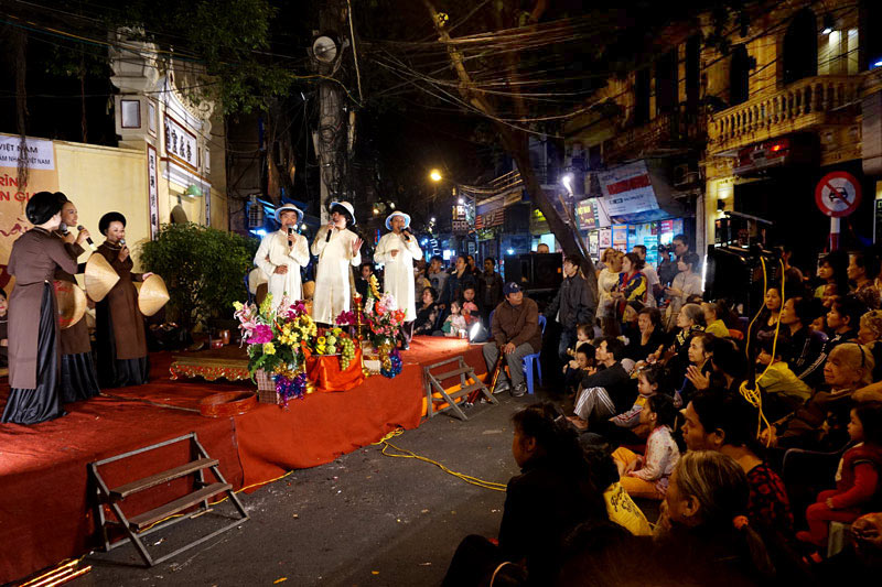 (VOVworld) – Pada akhir pekan, di banyak jalan di sektor kota kuno Hanoi, berbagai ragam musik tradisional seperti opera Cheo, opera Tuong, lagu rakyat dan musik ritual Hau Dong dipertunjukkan secara langsung dan hidup-hidup serta menyerap kedatangan banyak wisatawan domestik dan wisatawan mancanegara. Semua aktivitas musik tradisional yang dipertunjukan di ruang jalan-jalan ini tidak hanya membuat pemandangan alam dan manusia kota Hanoi menjadi beranekaragam dan atraktif, tapi juga ikut serta secara efektif pada pekerjaan mengkonservasikan dan menyosialisasikan berbagai ragam musik dan warisan budaya bangsa Vietnam.