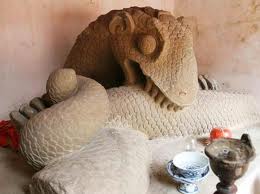 Citra Naga terukir secara teliti di atas tempat pemujaan.