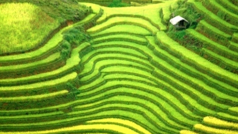Budaya cocok tanam sawah terasering di daerah pegunungan Vietnam Utara