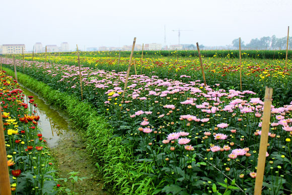 Kecamatan Tay Tuu adalah daerah spesialis penanaman bunga besar di kota Hanoi dengan luasnya kira-kira 500 hektar dan saban tahun memasok jutaan bunga berbagai jenis kepada pasar. Dengan usaha spesialis dan mengembangkan banyak jenis bunga yang punya nilai ekonomi tinggi, maka kejuruan menanam bunga memberikan pendapatan rata-rata 550 juta dong Vietnam per hektar kepada warga kecamatan Tay Tuu, berlipat banyak kali terbanding dengan penanaman padi. Kehidupan warga di kecamatan ini menjadi baik secara signifikan. Bapak Bui Trung Hoa, Wakil Ketua Komite Rakyat kecamatan Tay Tuu memberitahukan bahwa kecamatan ini menanam dan menjual bunga sepanjang tahun dan selama bertahun-tahun ini telah memperluas areal penanaman bunga. Sekarang ini, semua koperasi di kecamatan Tay Tuu sedang berusaha menciptakan syarat sebaik-baiknya kepada kaum tani dengan menjamin mencukupi air untuk ladang-ladang bunga. “Untuk membuat persiapan bagi Hari Raya Tet, selain areal cocok tanam di daerah, kaum tani juga menyewa lagi lahan di kabupaten-kabupaten di sekitarnya. Berbagai jenis bunga juga mendapat perhatian dari kaum tani. Disamping itu, program penyuluhan pertanian dan pos penjagaan tumbuh-tumbuhan juga membuka kursus-kursus tentang pola penerapan teknologi tinggi dalam produksi bunga, khususnya penggunaan obat anti hama dan perawatan bunga kepada para anggotanya”.