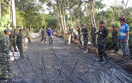 Tentara membantu kecamatan My Khanh membangun jalan-jalan