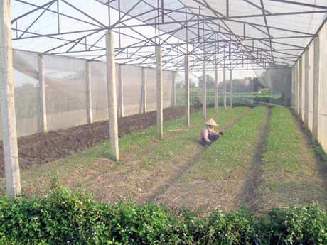 Menanam sayur dalam rumah jaring di provinsi Quang Ninh