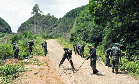 Tentara membantu rakyat membangun jalan pedesaan