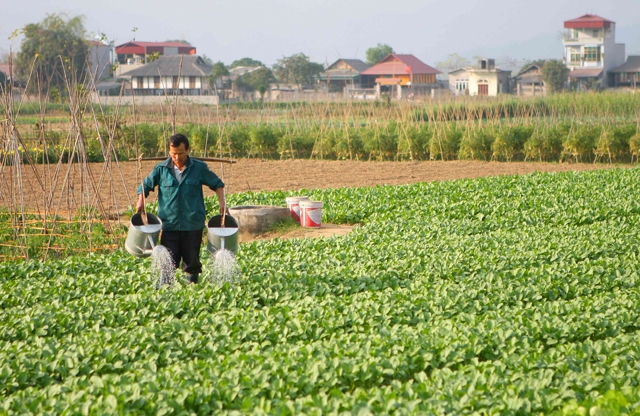 Petani di kecamatan Tuy Loc menanam sayur-sayuran organik