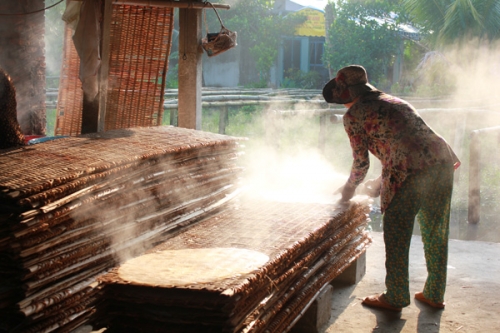 Tapi, untuk bisa mempertahankan ciri khas dari serat “hu tieu” dari kerajinan tradisional, selain bermacam jenis beras yang dipilih oleh tempat-tempat pembuatan “hu tieu”, mereka di sini juga memiliki cara tersendiri seperti memakai daun “giang”, sejenis pohon di hutan, untuk menangani tepung beras. Tentang tahapan membuat “hu tieu” yang paling penting, bapak Huynh Huu Nghiem memberitahukan: