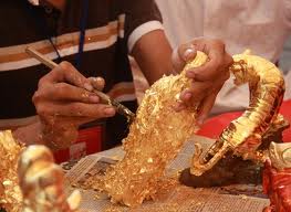 Mengukir patung yang dilapisi dengan kertas emas