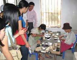 Artisan Le Van Vong memberitahukan bahwa "Kerajinan keluarga kami merupakan kejuruan tradisional yang turun temurun dari generasi kekek buyut kami sampai sekarang, saya menguasai teknnik kerajinan tangan prosesing produk yang dilapisi dengan kertas emas dan perak dan sekarang ini mengajarkan kejuruan kepada anak cucu dalam keluarga.”