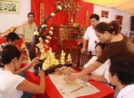 (VOVworld) – Desa Kieu Ky adalah satu desa kuno tradisional yang terletak di kabupaten Gia Lam, jaraknya kira-kira 20 kilometer dari jantungnya ibukota Hanoi. Sampai sekarang, desa Kieu Ky tetap merupakan tempat satu-satunya di seluruh negeri yang masih mempertahankan kerajinan membuat daun emas tipis. Kalau datang mengunjungi cagar-cagar sejarah, kuil, pagoda, balai desa… di sini, wisatawan merasa heran dan sangat terkesan karena patung-patung Buddha, papan kayu yang adalah patung kalimat berpasangan dengan isi kata-kata baik, hiasan di altar dan tempat pemujaan yang dilapisi dengan emas dan perak yang berkilau-kilau, dll. Wisatawan juga merasa lebih heran ketika mengetahui bahwa, karya-karya artistik yang dilapisi dengan emas yang bagus itu justru dibuat oleh tangan yang terampil artisan-artisan desa Kieu Ky.