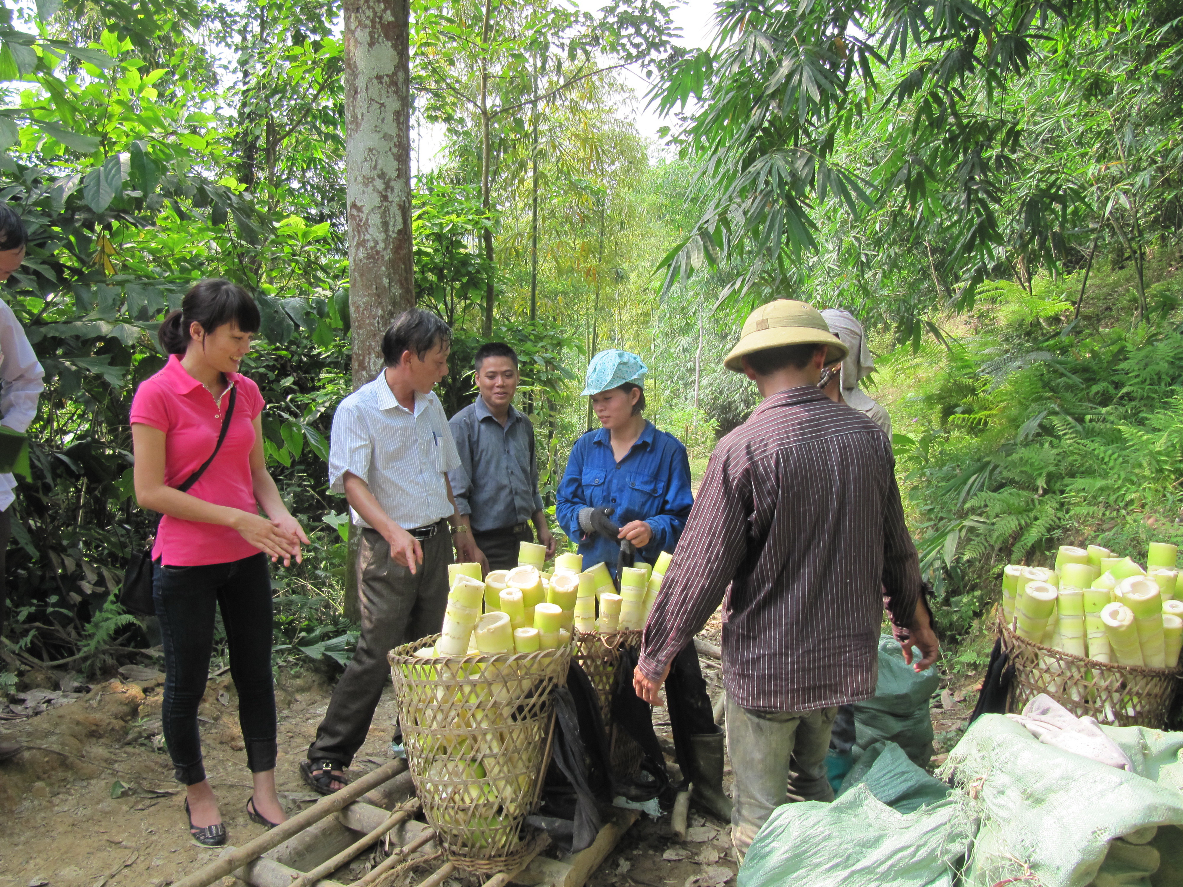Para petani kecamatan Kien Thanh mengumpulkan Rebung Bat Do