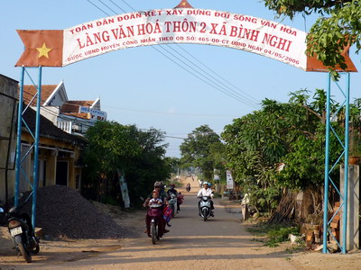 Gerakan pembangunan pedesaan baru telah dan sedang melanda luas banyak daerah di provinsi Binh Dinh. Provinsi Binh Dinh telah menggerakan semua sumber dana dari semua organisasi, unit dan badan usaha untuk membangun infrastruktur, proyek-proyek lalu lintas, irigasi, mengatasi kesulitan tentang modal kepada semua daerah. Phan Thanh Gian, Anggota Harian Kantor Koordinator Program Pembangunan Pedesaan Baru provinsi Binh Dinh memberitahukan: Untuk melaksanakan program pembangunan pedesaan baru, pimpinan provinsi telah datang ke semua daerah lain untuk belajar. Dan juga dari kunjungan-kunjungan ini, pimpinan provinsi telah membimbing bahwa pembangunan pedesaan baru adalah berpengaruh terhadap seluruh rakyat di daerah pedesaan. Oleh karena itu, harus melakukan penelitian untuk melaksanakannya secara mantap. Yang kedua ialah melakukan percontohan, lalu menggelarkannya di aeral yang luas dan berusaha mendapat sokongan dan kebulatan pendapat dari rakyat”.