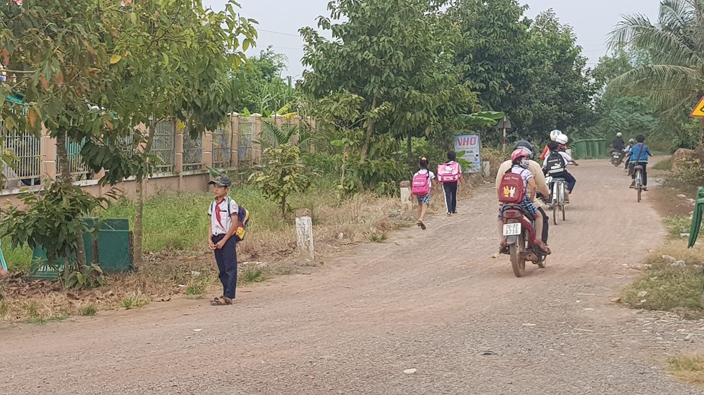 Setelah meningkatkan dan memperluas jalan "Kenh Lo Ngang", para pelajar dan warga berpindah secara aman (Foto: VOV) |