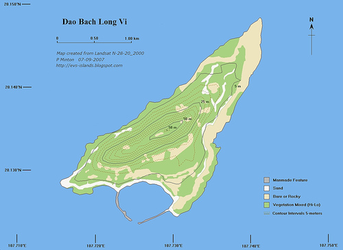 Bach Long Vy merupakan satu pulau yang panjangnya 3 km, lebarnya 1,5 km menurut arah Timur Laut-Barat Daya, bagian yang timbul luasnya 2,5 km persegi. Nama Bach Long Vy artinya ekor naga putih. Dalam perang perlawanan menentang Imperialis Amerika Serikat, Bach Long Vy mendapat gelar pahlawan angkatan bersenjata dari negara. Pada 26 Februari tahun 1993, satu tim pemuda sukarela yang terdiri dari 62 pemuda pemudi telah melintasi ombak dan angin untuk datang di pulau tersebut. Mereka membentuk perkampungan pemuda yang tinggal dan bekerja untuk membangun kehidupan baru di pulau. Saudari Vu Thi Ngan, kepala tim pemuda pembidas generasi pertama yang tinggal di pulau mengenangkan kembali: “Pada saat itu di pulau belum ada penghuni, kehidupan sangat sulit dan serba kekurangan. Segala persyaratan materiil dan fasilitas bergantung pada daratan. Ketika kami datang kemari, sampai dua bulan kemudian baru ada kapal angkatan laut yang datang berlabuh di pulau. Hanya ada satuan kecil pemuda yang tinggal di pulau, akan tetapi kami telah menerima kira-kira 3-4 kantong surat dari saudara-saudara, kawan-kawan, banyak di antara kami yang membaca surat sambil menangis.”