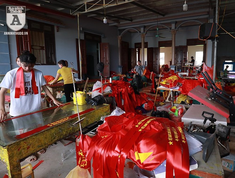 Bendera Nasional diproduksi secara profesional di Desa Tu Van. (Foto: BAOMOI.COM)