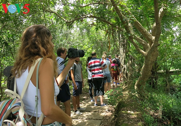 Setelah berkunjung di kebun milik bapak Tam Cho, wisatawan menjelajahi kebun-kebun buah-buahan yang penuh buah, menyeberangi satu jalan yang penuh cahaya matahari untuk tiba di kebun milik bapak Le Hoang Son. Bapak Le Hoang Son mempunyai kebun pohon anggrek yang luasnya kira-kira 2700 m2, dengan kira-kira 1 000 pohon anggrek. Bapak Le Hoang Son memberitahukan: “Dulu, di sini juga ada kebun klengkeng. Kami telah berpindah menanam pohon anggrek tapi situasi juga tidak prospektif, maka kami telah menyelenggarakan ekowisata. Waktu yang paling banyak wisatawan yalah dari September tahun ini sampai April tahun berikutnya. Kebun buah-buahan pada waktu ini juga indah. Kalau ikut melakukan paket-paket wisata, kami harus merawat kebun supaya kabun pohon anggrek penuh bunga yang bermekaran”.