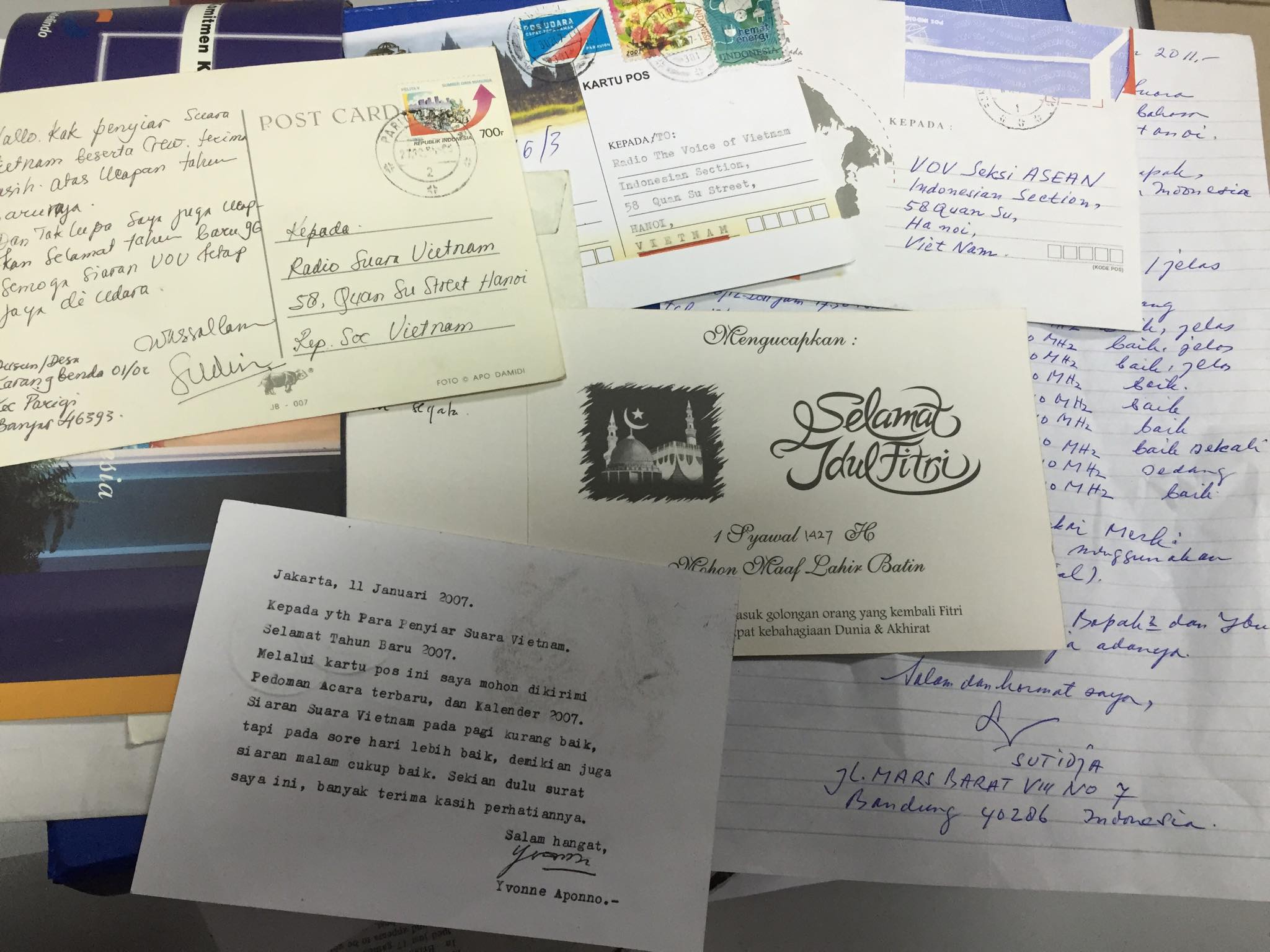 Saudara Tjan Pak Ning di Sumatera pekan lalu juga mengirim laporan pemantauan siaran Radio pada tanggal 18/3, di frekuensi 12020Khz dengan penilaian SINPO 44444. Selain itu, Anda juga minta QSL dan pranko Vietnam serta poscard pemandangan alam kota Hanoi dan kota Ho Chi Minh.