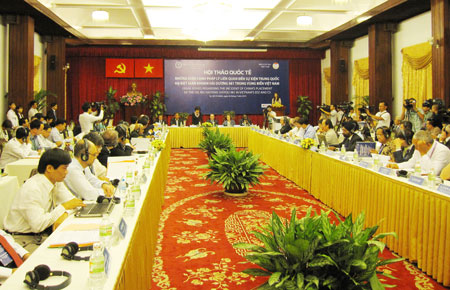 (VOVworld) – Lokakarya internasional dengan tema “Segi-segi hukum yang bersangkutan dengan peristiwa Tiongkok menempatkan anjungan minyak Haiyang Shiyou 981 di wilayah laut Vietnam”telah diadakan di kota Ho Chi Minh pada Sabtu (26 Minggu. 14 referat yang disampaikan di depan 3 sesi sidang berfokus pada 3 tema pokok: Hukum internasional dan peritsitwa Tiongkok menempatkan anjungan minyai Haiyang Shiyou 981; Menangani semua sengketa dengan langkah politik dan dilomatik dalam hukum internasional; Menangani sengketa dengan langkah hukum dalam hukum internasional.