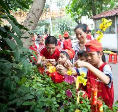 Saudara Eddy Setiawan dan para pendengar yang budiman, saban tahun, setiap kali Hari Raya Tet Tradisional tiba, semua orang Vietnam meskipun sibuknya dimanapun bermukim atau bekerja juga berusaha kembali ke kampung halaman untuk berkumpul dengan keluarga. Banyak orang ingin menyembah altar pemujaan, mengunjungi kembali kuburan atau rumah pemujaan nenek moyangnya. Banyak orang ingin mengunjungi tempat dimana dulu mereka pernah tinggal dengan keluarga pada masa muda dan kecil. Oleh karena itu, pada hari-hari dekat Hari Raya Tet Tradisional, semua orang berduyun-duyun membeli barang- barang kebutuhan untuk Hari Raya tet, bersma dengan keluarga kembali ke kampung halamannya.
