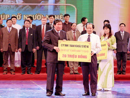 Saudara Min Lin yang budiman! Dari 15 Oktober 2000, dengan semangat saling membantu dan “daun utuh melindungi daun robek”, Pengurus Besar Front Tanah Air Vietnam telah membentuk “Dana demi orang miskin” di berbagai tingkat. Saban tahun, untuk mengundang partisipasi dari semua perseorangan dan organisasi mendukung Dana demi orang miskin, Pengurus Besar Front Tanah Air Vietnam telah menyelenggarakan program temu pertukaran kesenian dengan tema: “Menyambungkan tangan-tangan panjang - demi orang miskin” yang langsung disiarkan Radiodan ditayangkan Televisi. Semua perseorangan dan organisasi di seluruh negeri bisa turut memberikan bantuan kepada Dana demi orang miskin melalui telepon langsung kepada program ini. Pada tahun 2010, total uang yang dikumpulkan dalam program ini mencapai 6,2 triliun VND dan pada tahun 2011: 6,6 triliun VND. Diantaranya jumlah uang yang diberikan kepada Dana demi orang miskin mencapai 1,1 triliun VND. Dari sumber biaya tersebut, banyak daerah di seluruh negeri telah membangun dan mereparasi kira-kira 73 671 rumah untuk orang miskin, memikirkan jutaan orang untuk mempunyai lapangan kerja dan memberikan bantuan perkakasa produksi, membantu anak-anak miskin bisa pergi ke sekolah dan orang-orang miskin mendapat pengobatan tanpa bayar.