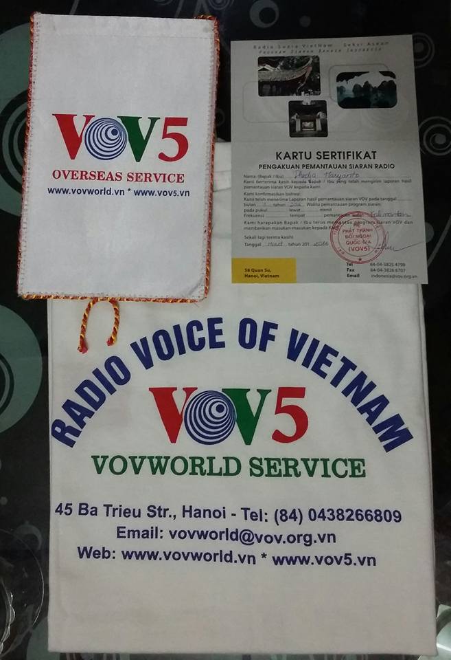 Selain Email dan laporan pemantauan terinci, pada pekan lalu, VOV telah menerima banyak pengumuman di Facebook dari para pendengar radio Indonesia. Saudara Thedja Haryanto dari Kalimantan Barat telah berkirim foto-foto souvenir VOV dengan komentar “Terimakasih VOV5 siaran Bahasa Indonesia atas souvenirnya berupa T Shirt, vandel dan kartu sertifikat”. Sedangkan, saudara Aries Tyanto juga mengatakan telah menerima surat dan souvenir VOV.