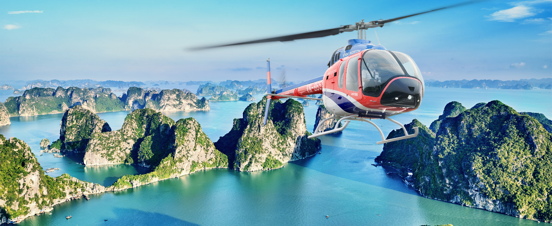 Datang ke jasa ini, para wisatawan mempunyai tiga pilihan: 12 menit, 25 menit dan 40 menit dengan perjalanan-perjalanan yang berbeda, memenuhi kebutuhan jasa penerbangan memandangi Teluk Ha Long. Harga jasa ini berharga 125 USD setiap orang untuk perjalanan selama 12 menit. Perjalanan menemukan Teluk Ha Long akan dimulai dari Pulau Tuan Chau – pusat kegiatan-kegiatan rekreasi di Kota Ha Long, menikmati pemandangan di tempat gua Thien Cung - pulau Ga Choi - Pulau TiTop - Bai Tu Long - Pulau Reu - Tuan Chau.