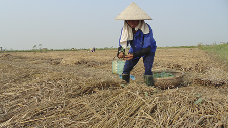Saudara-saudara budiman! Di daerah-daerah pedesaan di Vietnam, situasi kaum tani membakar dan membuang jerami kering yang semau-maunya setelah masa panenan adalah satu masalah mendesak. Selain jumlah jerami yang digunakan kaum tani untuk memasak, dimakan kerbau, sapi, menutupi sayur-sayuran, maka hampir 60 persen sisanya dibakar di sepanjang jalan, sehingga menimbulkan polusi terhadap lingkungan hidup, merusakkan jalan-jalan, menimbulkan bahaya terhadap manusia dan kendaraan peserta jaringan lalu lintas dan menimbulkan kemacetan pada proyek-proyek irigasi. Ini juga memboroskan satu sumber daya alam yang bermanfaat. Menurut Profesor Muda, Doktor Mai Van Trinh, Kepala Institut Lingkungan Pertanian, bisa menggunakan mikrobiologi untuk menangani jerami secara berhasil-guna. Dia memberitahukan: “Kami telah membuat beberapa solusi untuk menggunakan limbah ini. Pertama, kaum tani bisa menggunakan limbah ini untuk menanam jamur atau menutupi ladang sayur-sayuran, turut mempertahankan kelembaban, menghindari hujan dan memperkuat organik untuk tanah. Selain itu, kita bisa menggunakannya kembali sebagai pupuk kompos organik dengan cara menggunakan mikrobiologi untuk menangani jerami”.