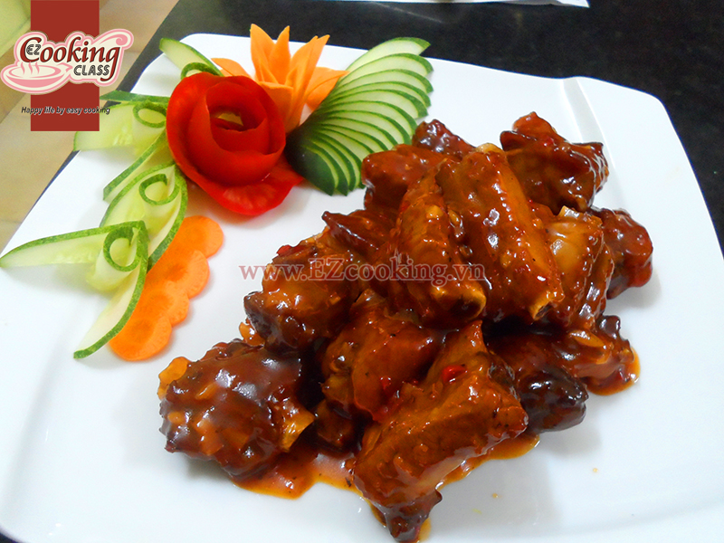 Cara membuat: Rusuk babi dibersihkan. Masukkan rusuk, bawang hijau, jahe, sedikit garam ke dalam periuk. Mendidih-nya selama 15 menit. Keluarkan-lah rusuk dari periuk itu dan dibiarkan menjadi kering. Campurkan satu mangkok yang berisi kecap ikan, air mendidih, gula, lemon, cabai, bawang putih yang diiris kecil dan satu sendok tepung jagung, semuanya diaduk menjadi satu jsnis saus. Masak minyak makan dalam pan dengan bawang putih yang diiris kecil dan digoreng harum. Kemudian, masuk-kan rusuk babi tersebut ke dalam-nya dan dimasak menjadi kuning. Setelah itu, masuk-kan saus tersebut ke dalam-nya, masak sampai air saus itu sedikit kental, masukkan tomat yang diiris kecil ke atas-nya dan masak terus sampai tomat menjadi lunak. Nah, kita sudah ada masakan “rusuk babi asam manis” yang enak.