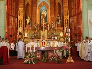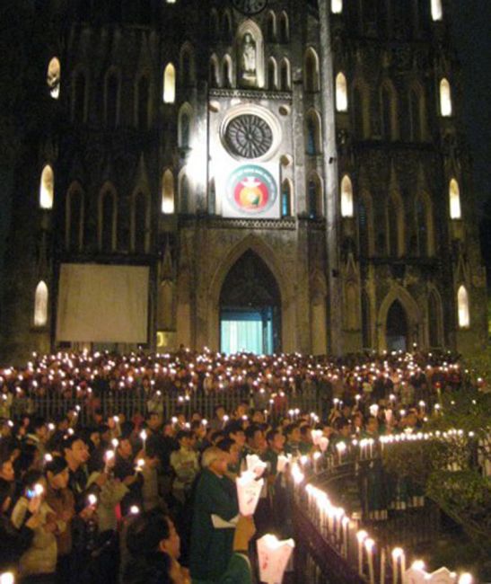 Saudara yang budiman! Pada akhir abad ke-16, awal abad ke-17, Vietnam memulai hubungan dengan negara-negara Barat, misalnya Portugal, Inggris, Perancis… Pada waktu ini, ada banyak missiopnaris Barat datang di Vietnam untuk mulai memperkenalkan agama Katolik. Pada September 1659, Paus Alexandre VII mengeluarkan keputusan untuk membentuk dua paroki di Vietnam. Setyelah lebih dari 400 tahun terbentuk dan berkembang, sekarang Gereja Katolik di Vietnam dibagi menjadi 3 propinsi gerejani Vietnam Utara, Vietnam Tengah dan Vietnam Selatan, diantaranya ada propinsi gerejani Hanoi, propinsi gerejani Hue dan Gerejani kota Ho Chi Minh. Oleh karena itu, di Vietnam ada tiga Gabungan Gerejani yalah Gabunkota Hanoi, kota Hue dan kota Ho Chi Minh beserta 23 wilayah propinsi Gerejani lain yang dibentuk di banyak daerah di seluruh negeri.
