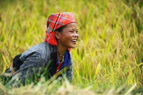 Kegembiraan Rakyat etnis minoritas dalam memaneni padi.