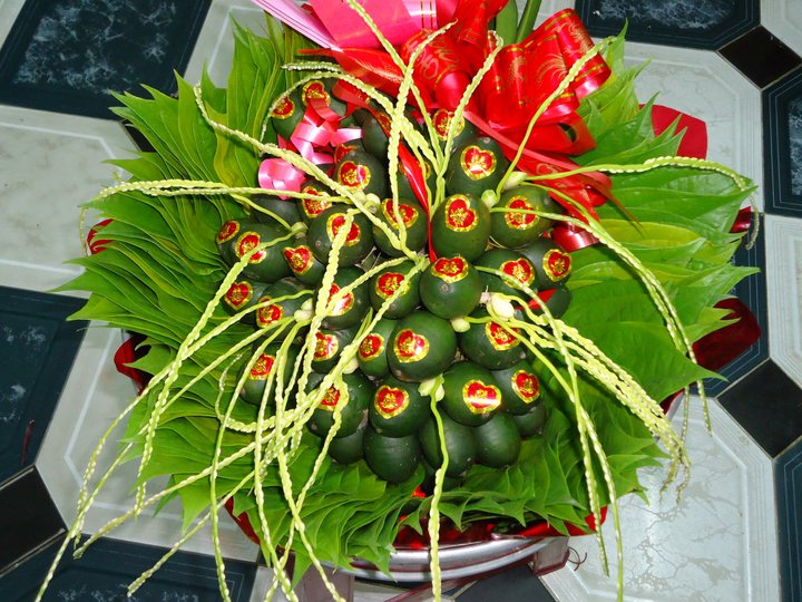Dalam semua pernik-pernik pernikahan di Vietnam, diantaranya ada buah pinang.