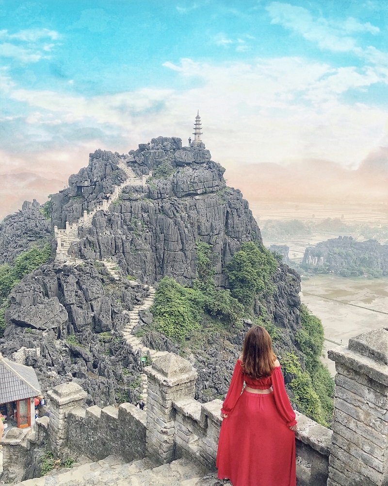 Aksentuasi zona wisata Hang Mua ialah pemandangan indah di jalan yang mengarah ke puncak Gunung “Mua” yang dibangun dengan meniru arsitektur Tembok Besar Tiongkok yang terdiri atas 486 tangga batu putih. Di awal jalan yang menuju ke gunung terdapat seekor naga batu yang dibuat sangat halus sehingga mengundang para wisatawan untuk menaklukkan jalan ke puncak gunung. Di puncak gunung terdapat menara-menara dengan arsitektur serupa dengan menara-menara di kuil dan pagoda dengan puncak tajam, atap melengkung, dan dibangun sesuai arsitektur stupa Buddha yang umum di negara-negara lain seperti India, Mongolia, Thailand, Laos, dan sebagainya. Belakangan ini, “Gua Mua” sering muncul di media ketika dipuji sebagai salah satu tempat wisata yang paling indah di Provinsi Ninh Binh atau Tembok Besar versi Vietnam. Agustus 2018, “Gua Mua” melampaui Situs Warisan Dunia Trang An, Tam Coc, atau Pagoda Bai Dinh, dengan berhasil lolos masuk lima besar dalam lima tujuan wisata di Provinsi Ninh Binh di situs online wisata nomor satu dunia, TripAdvisor.