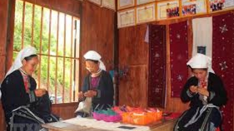 Memperkenalkan sepintas-lintas tentang produk bordir kain ikat dari kaum perempuan etnis minoritas Dao Tien