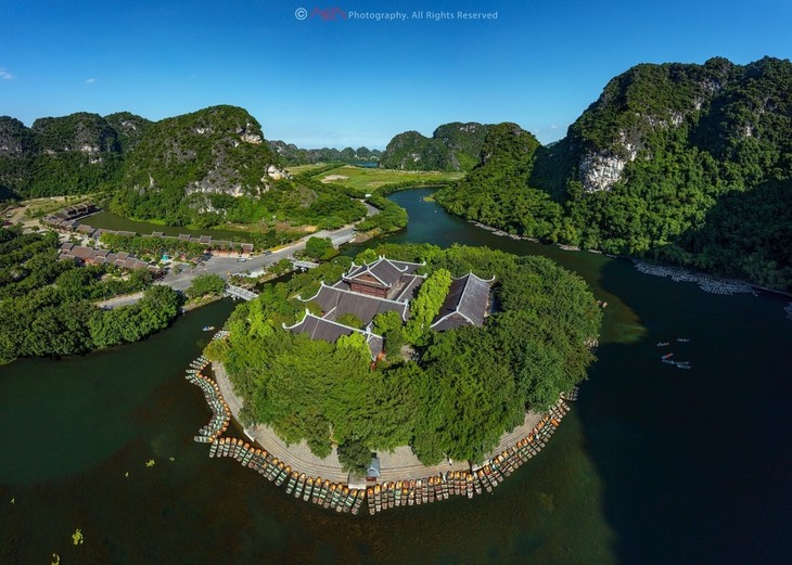 Panorama Kuil Tran (termasuk Kompleks Lanskap Trang An) dilihat dari atas, tempat dimana pemandangan alam dikaitan dengan sejarah ibu kota Negara Dai Co Viet (Foto: Minh Duc / VNA)