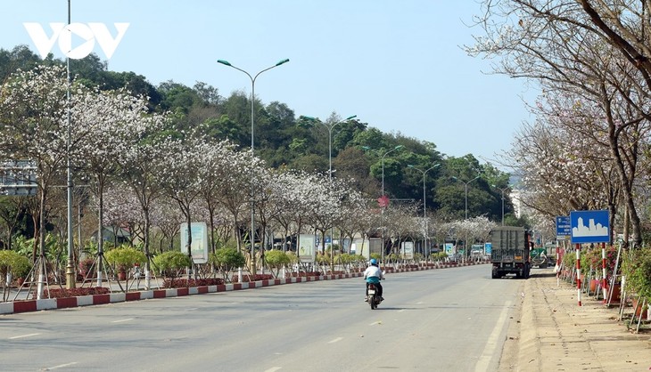 Datang ke kota gunung Son La pada saat ini, wisatawan dapat menikmati bunga Ban di sepanjang jalan-jalan utama.