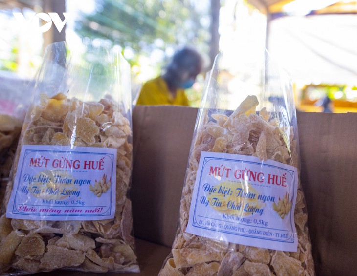 Manisan Jahe Kota Hue diiris kecil, harum, san pedas. Ha Cang – tempat dimana terkait dengan pohon buah roda dalam film “Mata Biru” juga dikenal sebagai tempat pembuatan manisan jahe yang terkenal di Kota Hue.