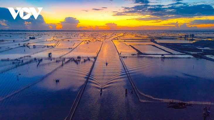 Pagar-pagar (sistem alat bagi nelayan untuk membudidayakan hasil laut di laguna) merupakan ciri khas di laguna tersebut. (Foto: VOV)