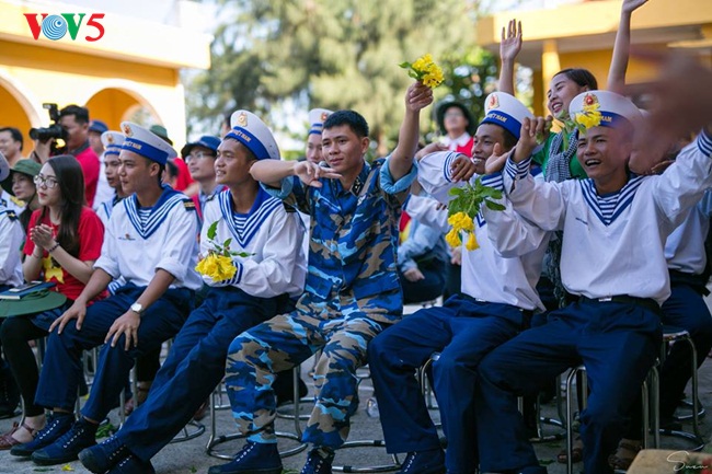 Pokja melakukan temu pergaulan dengan para prajurit di pulau Sinh Ton Dong