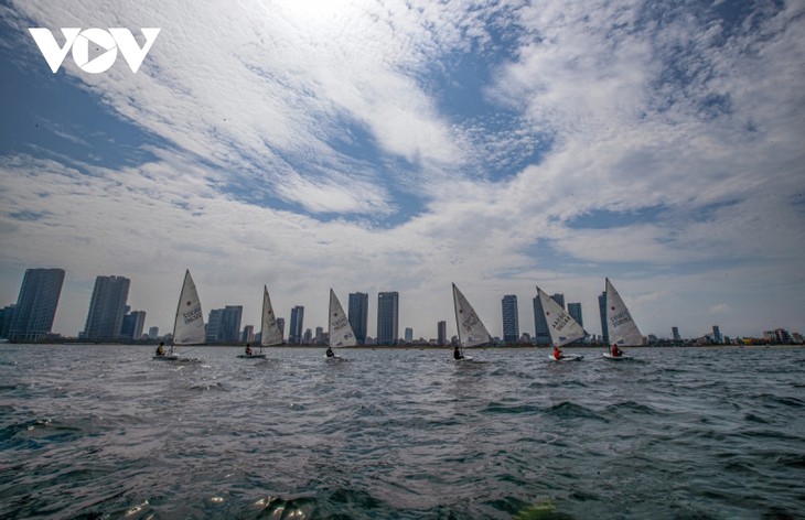 Citra laya-layar putih luncur di pemukaan air laut pada siang tidak aneh untuk warga Kota Da Nang.