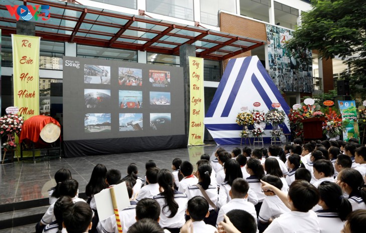 Pada tahun ini, 100 foto tentang Truong Sa dan anjungan DK 1 telah dipamerkan dalam acara pembukaan tahun ajar baru di sekolah Luong The Vinh (Kota Ha Noi) untuk membantu para pelajar dan para guru lebih mengerti tentang kesulitan yang dihadapi para komandan dan prajurit di tempat yang penuh kesukaran, tentang kedaulatan Tanah Air serta kegigihan para komandan dan prajurit di pulau yang jauh.