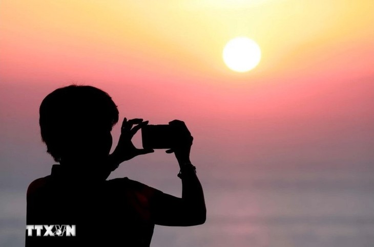 Pengunjung mengambil foto waktu fajar yang pertama di Vietnam. Foto: Nhat Anh/VNA