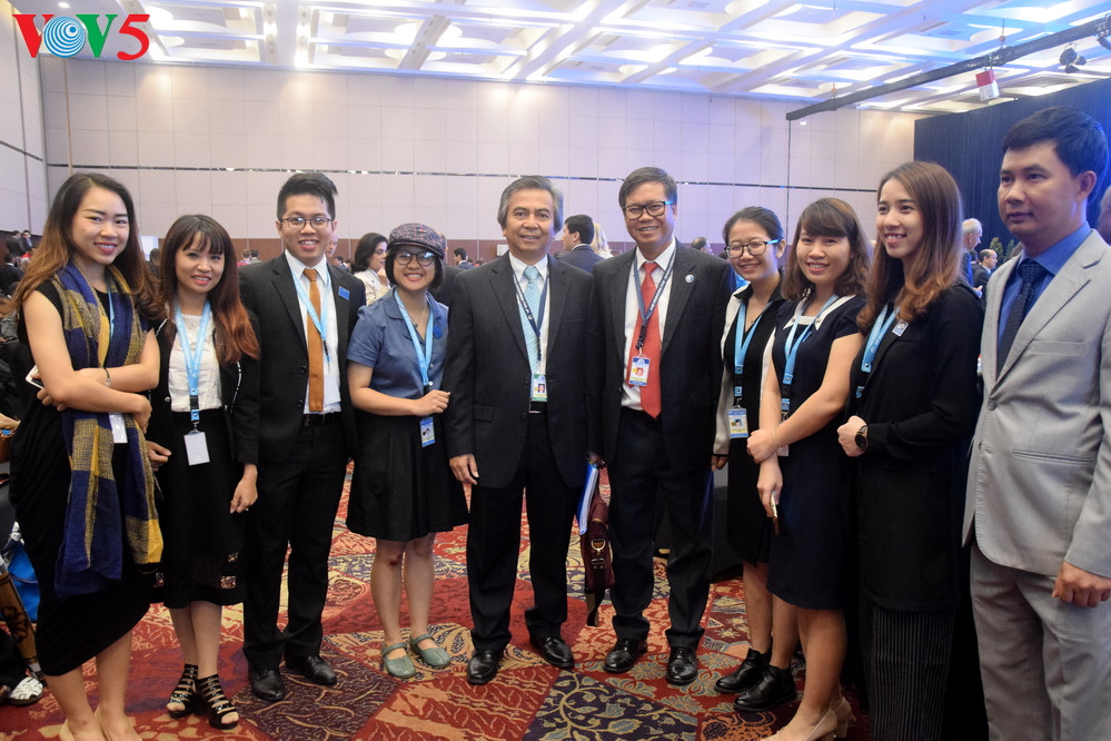 Yang menghadiri forum ini, ada Wakil Presiden (Wapres) Indonesia, Yusuf Kalla, Menteri Luar Negeri (Menlu) Indonesia, Retno Marsudi dan 100 wakil asal 96 negara dan organisasi internasional, seperti ASEAN, Uni Eropa, PBB dan lain- lain.... |