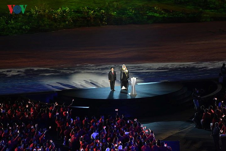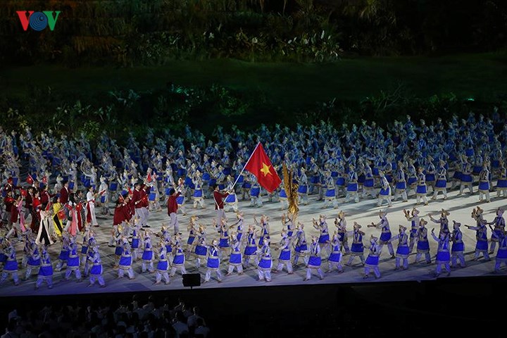 Atlet Vu Thanh An membawa bendera Vietnam dengan kontingen olahraga Vietnam masuk ke stadion. Kontingen olahraga Vietnam dalam seragam baju vest merah dan “Ao dai” (baju panjang tradisional). Kontingen olah raga Indonesia merupakan delegasi terakhir melakukan demonstrasi.