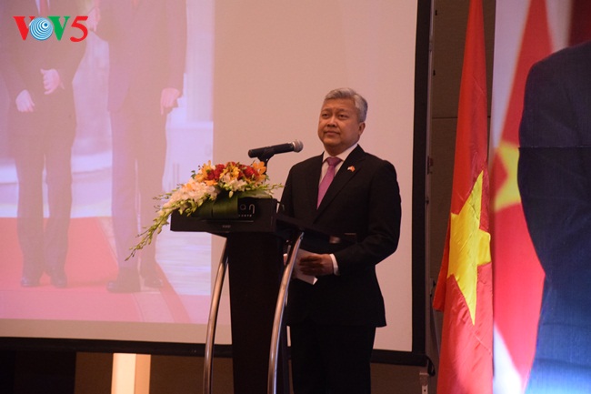 Ketika berbicara di depan resepsi tersebut, Duta Besar Indonesia untuk Vietnam, Ibnu Hadi membeberkan kembali peristiwa-peristiwa penting yang berlangsung pada tahun 2017