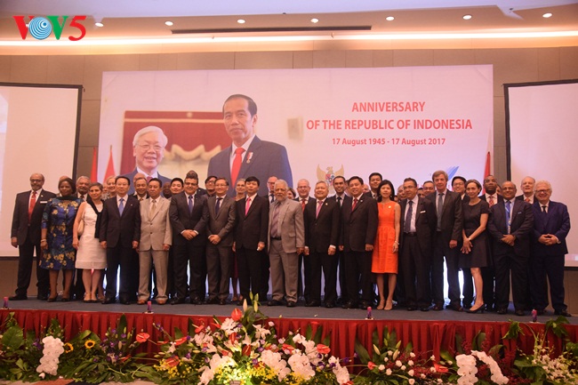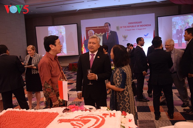 (VOVWORLD) - Kedutaan Besar Republik Indonesia di Vietnam, Rabu siang (06 September), di Kota Hanoi, telah mengadakan dengan khidmat resepsi sehubungan dengan peringatan ultah ke-72 Hari Kemerdekaan Republik Indonesia (17/8/1945-17/8/2017).