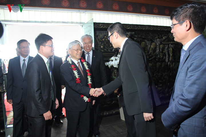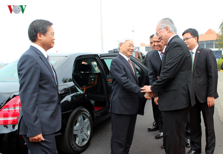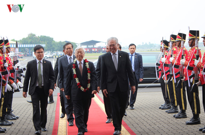 | Sekjen KS PKV Nguyen Phu Trong dan delegasi tingkat tinggi Vietnam tiba di bandara internasional Soekarno Hatta, Jakarta,Pada pukul 12.10 tanggal 22/8 menurut WIB. |