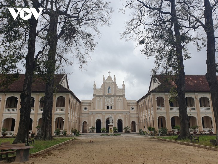 Para biarawati sedang berdoa Seninari kecil Lang Song dibangun menurut arsitektur Gothic, ragam arsitektur yang khas dari orang Eropa dalam membangun gereja. |