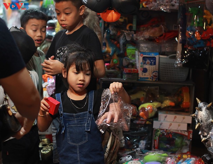 Jalan Hang Ma (Distrik Hoan Kiem), yang selama bertahun-tahun ini dikenal sebagai "pusat" penjualan dekorasi, saat ini dipenuhi dengan segala jenis produk untuk festival Halloween mendatang (31 Oktober).